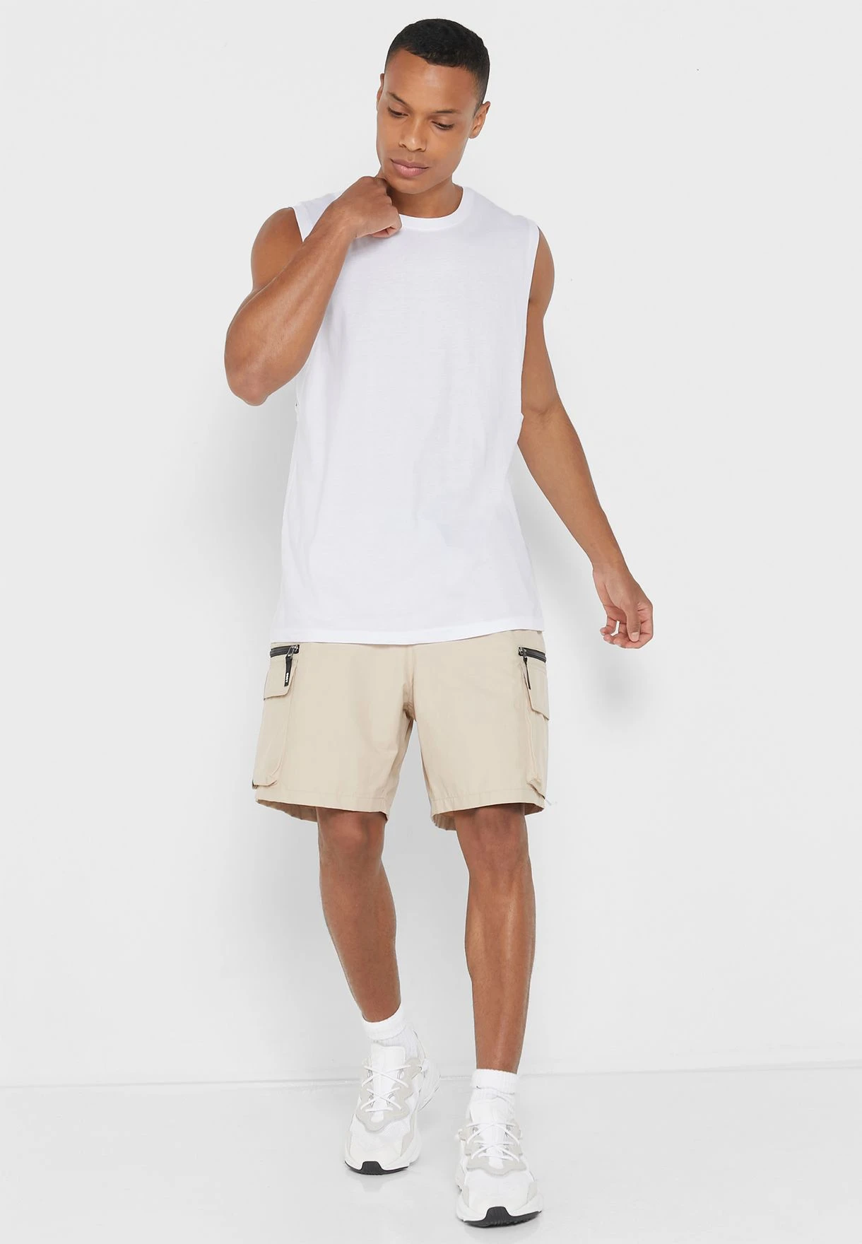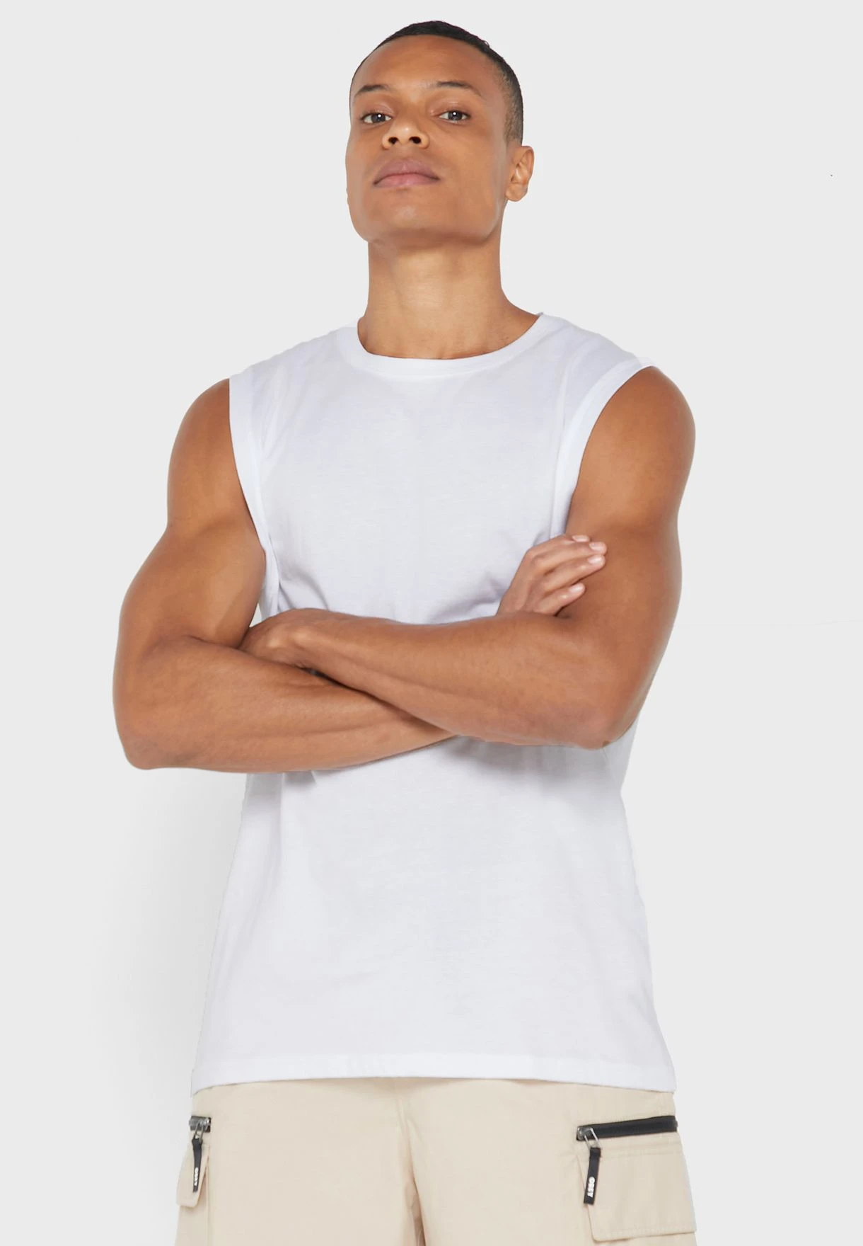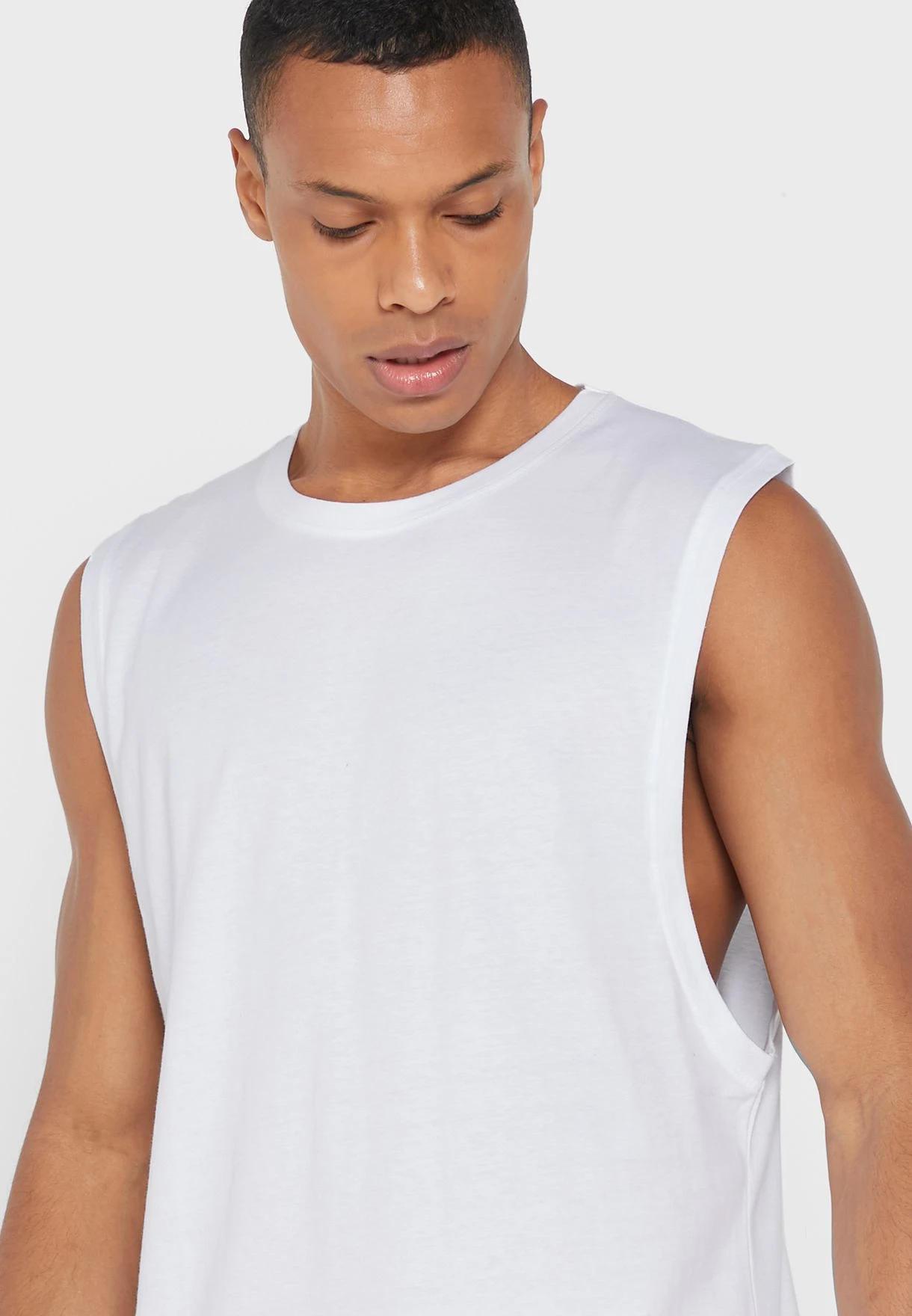 - Crew neck and sleeveless cut