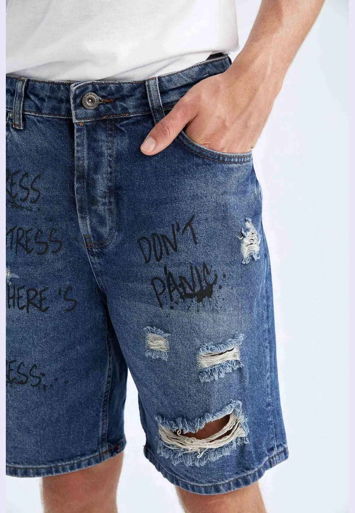 DeFacto Slim Fit Distressed Jean Short